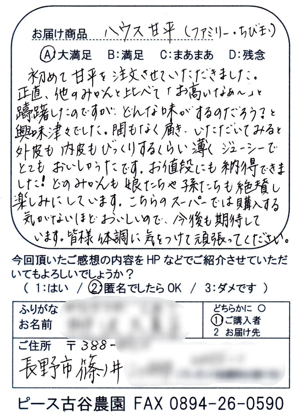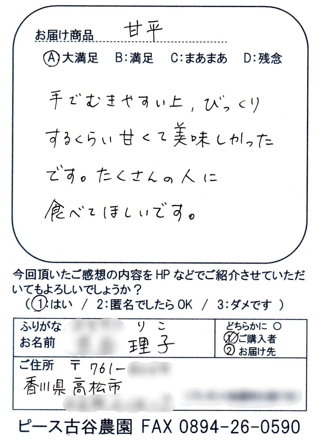 ピース古谷農園の「ハウス甘平」は 口にほおばると薄皮が感じられないくらい薄くてプリプリの食感の後の甘味が絶品!という内容のご感想のお便りをたくさんいただきます✉ → ご感想紹介はこちら🍊