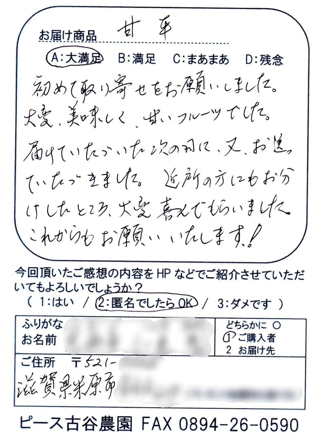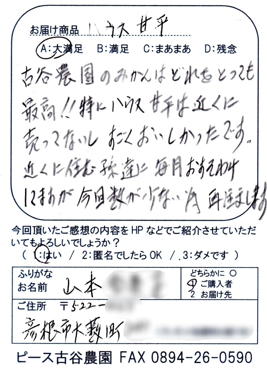 当園の柑橘をお届けした皆様から嬉しいご感想、温かいメッセージをたくさん頂戴し、いつも励まされて農作業に取り組んでいます。頂いたお葉書をいくつかご紹介させていただきます。
