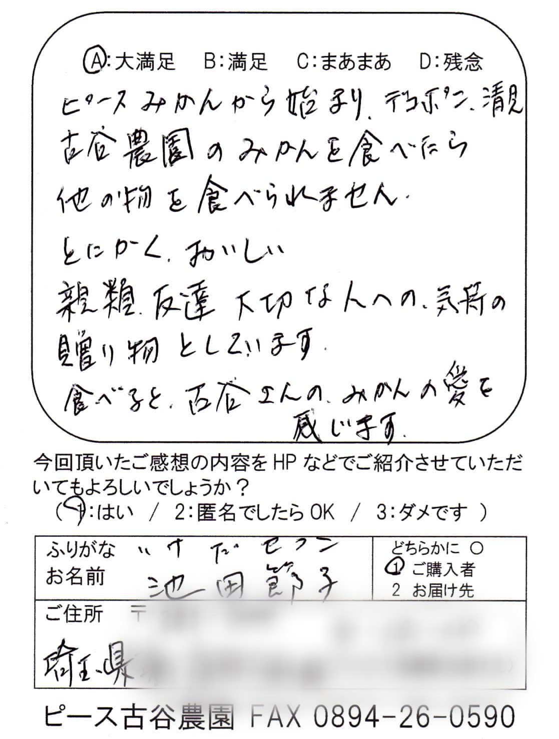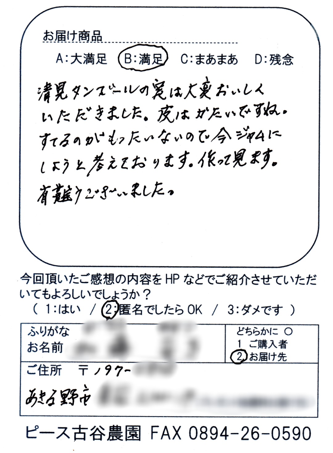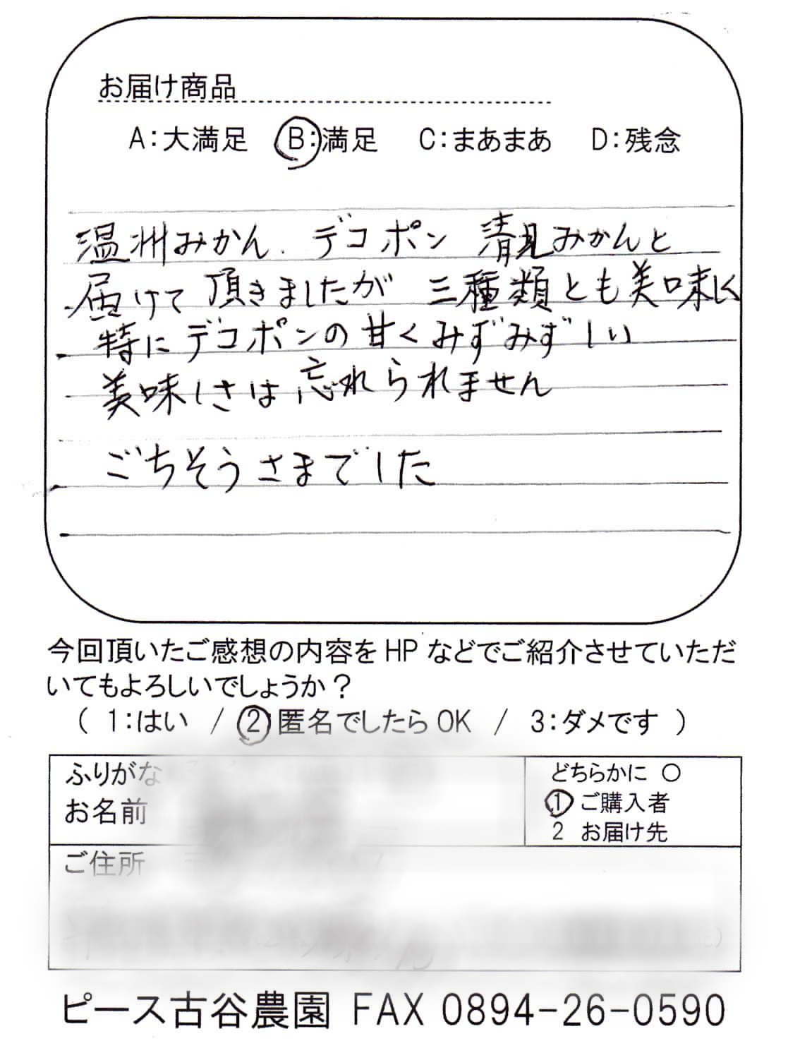 当園の清見タンゴールをお届けした皆様から嬉しいご感想、温かいメッセージをたくさん頂戴し、いつも励まされて農作業に取り組んでいます。頂いたお葉書をいくつかご紹介させていただきます。