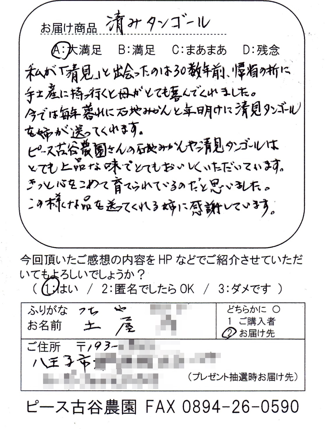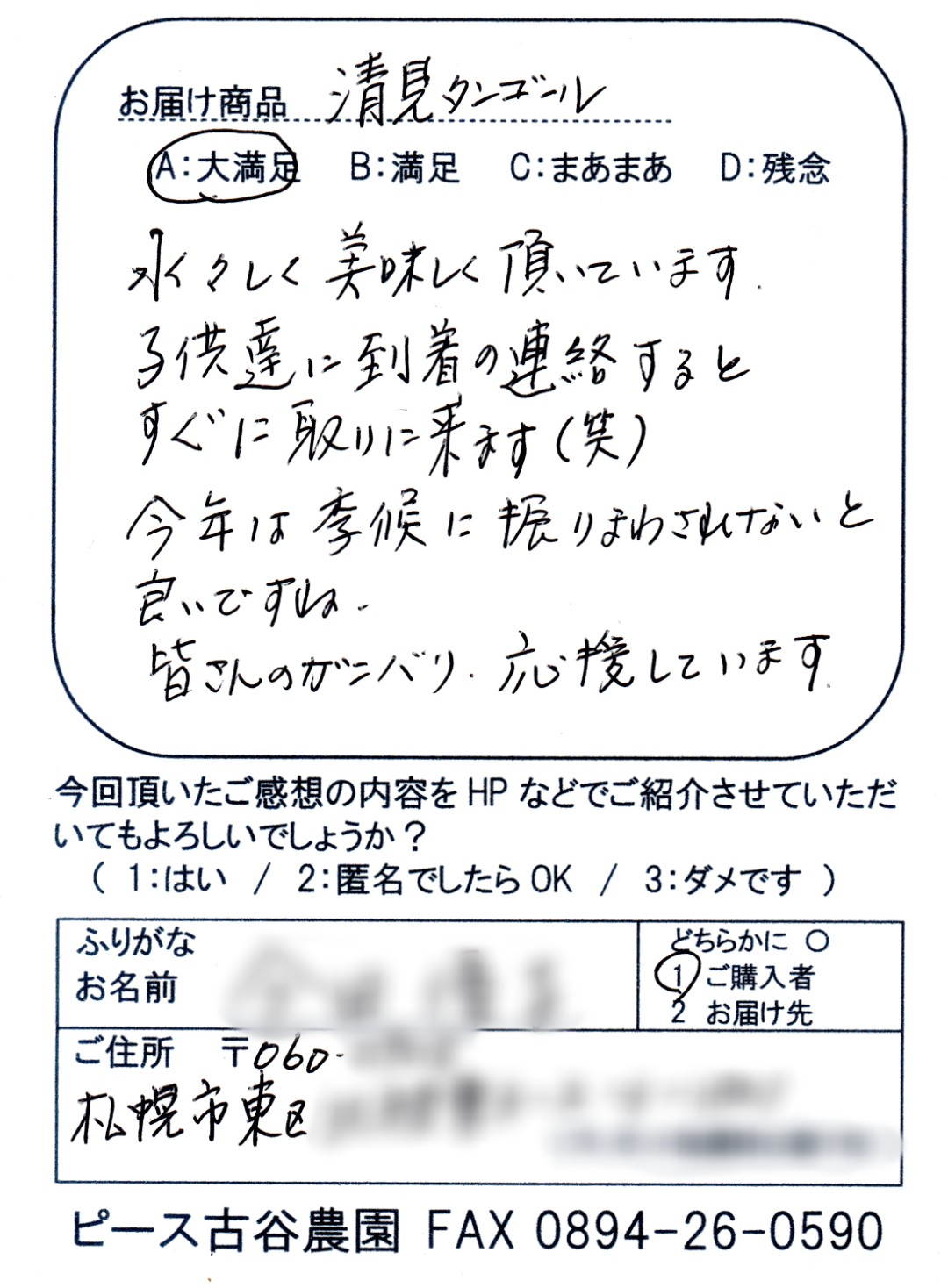 「 清見タンゴール 」のご感想メッセージありがとうございます